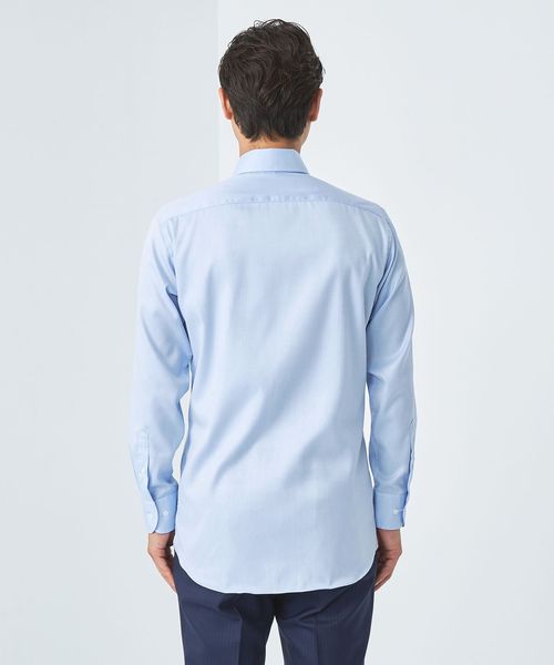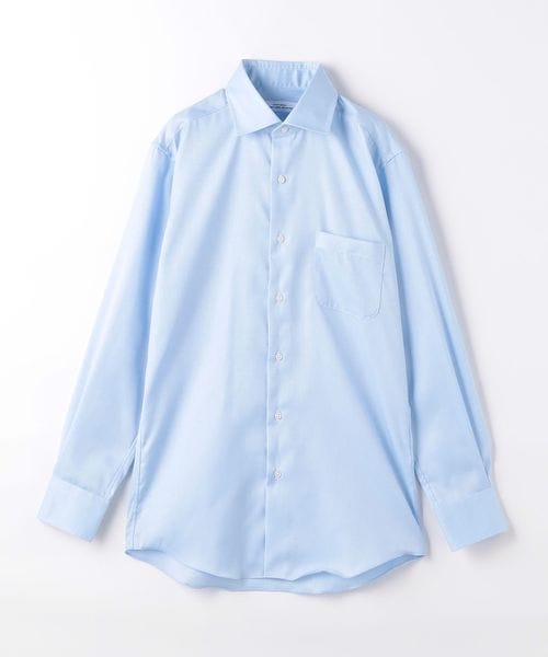 コットン ヘリンボーン ショートワイドカラー ドレスシャツ ―イージーアイロン―