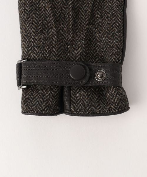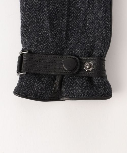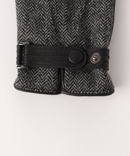 ヘリンボーン×レザー ボタン グローブ ―タッチスクリーン対応―