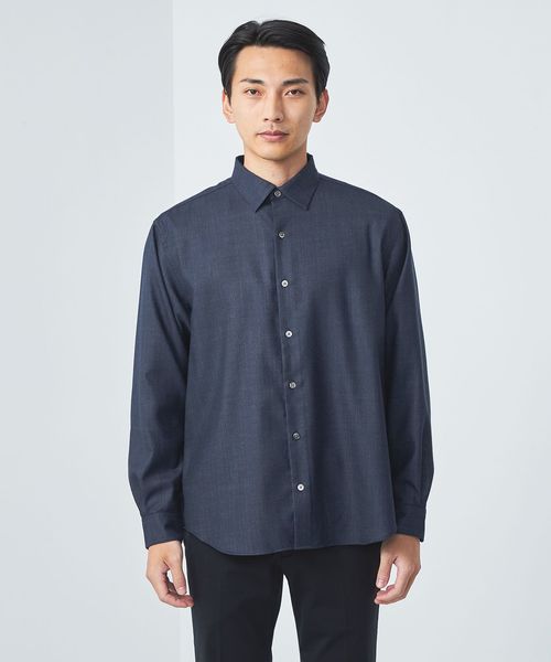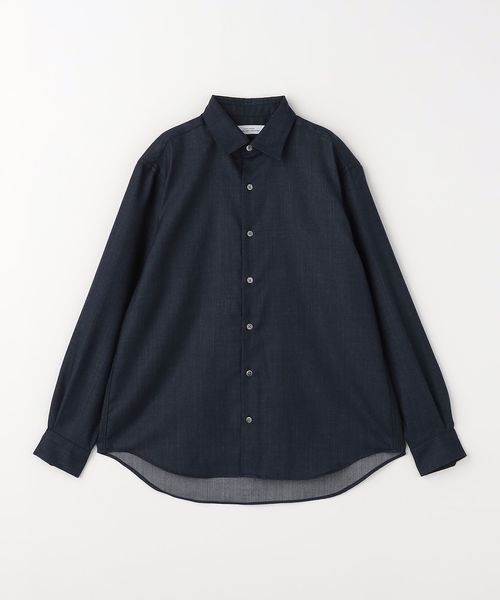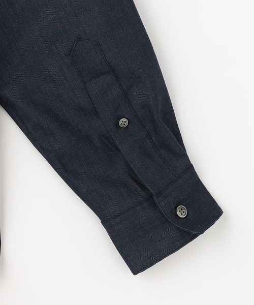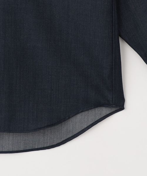 ややゆとりのあるリラックスシルエットのデニムライクシャツです。