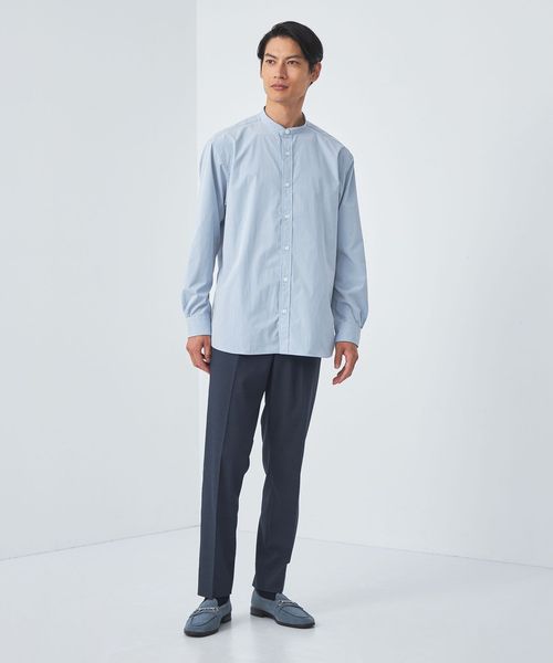 ポリエステル ラッカンバンドカラー リラックス シャツ ―ストレッチ・吸水速乾―