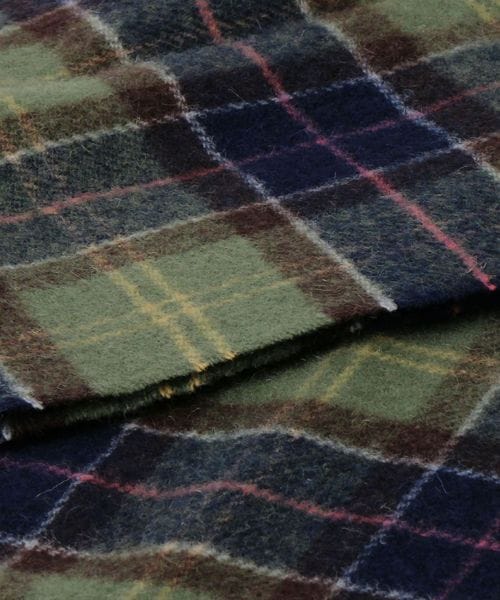 ウール素材で肌触りの良い、寒い日に最適なチェックマフラー。