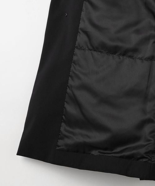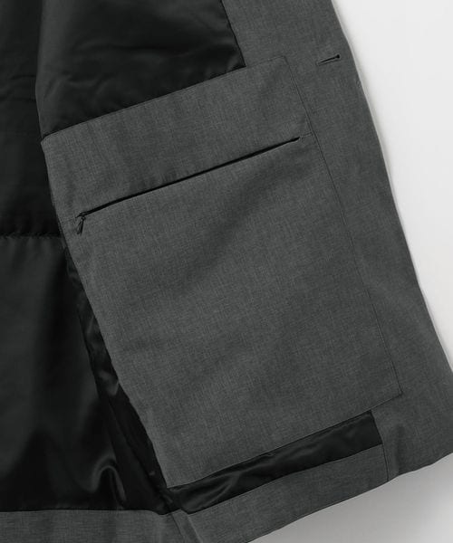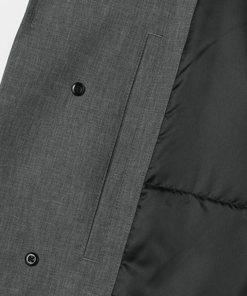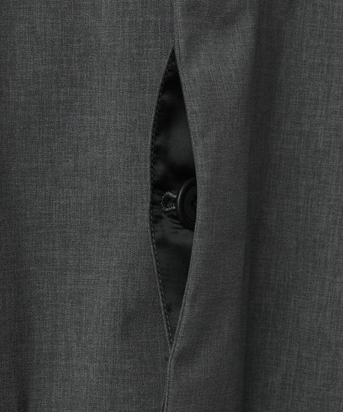 小さめの襟やフラップポケット、比翼仕立てのフロントデザインなど、すっきりとしたディテールがポイント。