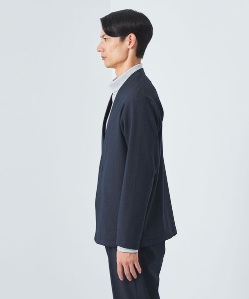A+ ポリエステルツイード 1B ノーカラー ジャケット ―ウォッシャブル・ストレッチ・防シワ―