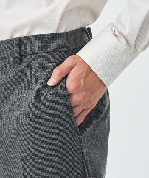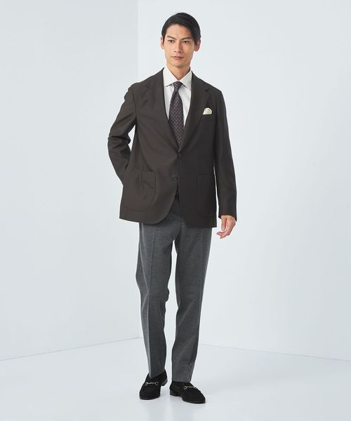 光沢のあるつるっとした梳毛生地や、組織感のあるややカジュアルなジャケットなど、様々なジャケットとも相性が良く汎用性の高い一本です。