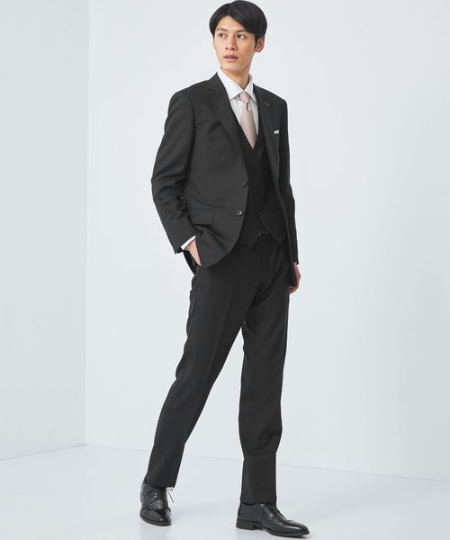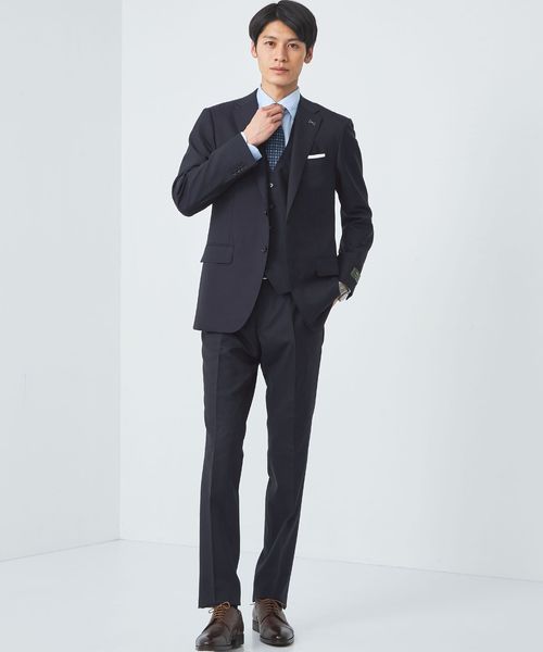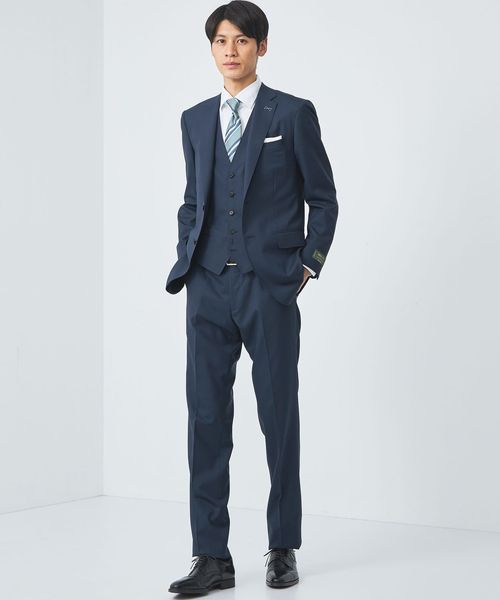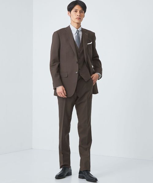 同素材パンツと合わせたスーツスタイルが、ビジネスシーンで大活躍。