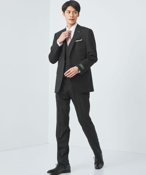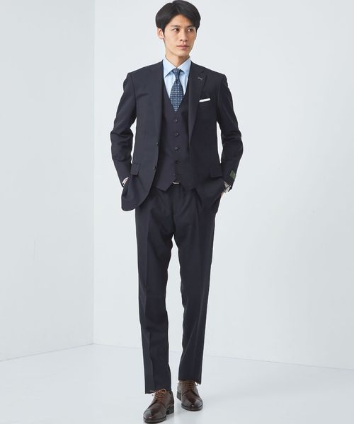 同素材パンツと合わせたスーツスタイルが、ビジネスシーンで大活躍。