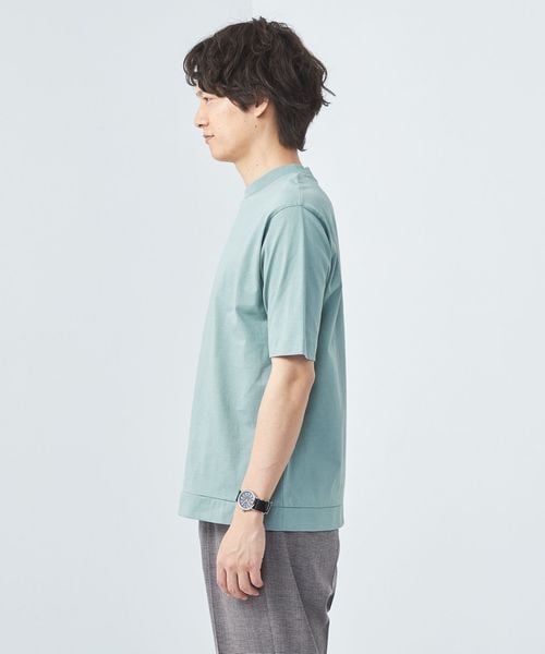裾の切り替えがデザインポイントで、タックアウトでの着用でも品よく見せてくれます。