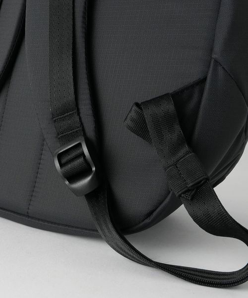 持ち運び用のハンドルやジップ付き大型フロントポケット、パッド入りのショルダーストラップなど細かいディティールも魅力。
