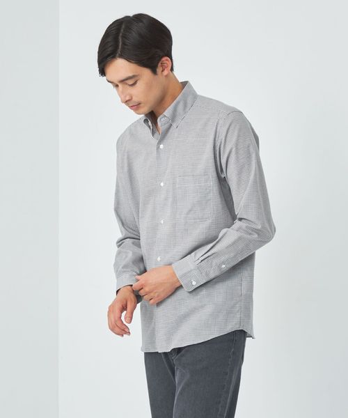 エブリット コットン麻 チェック スナップダウン ドレスシャツ ―イージーアイロン・接触冷感―