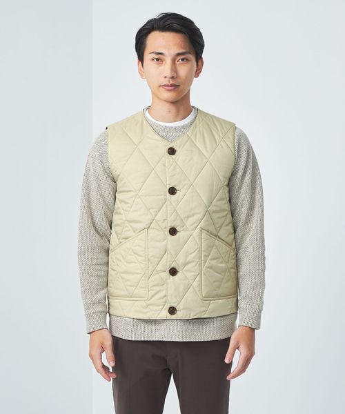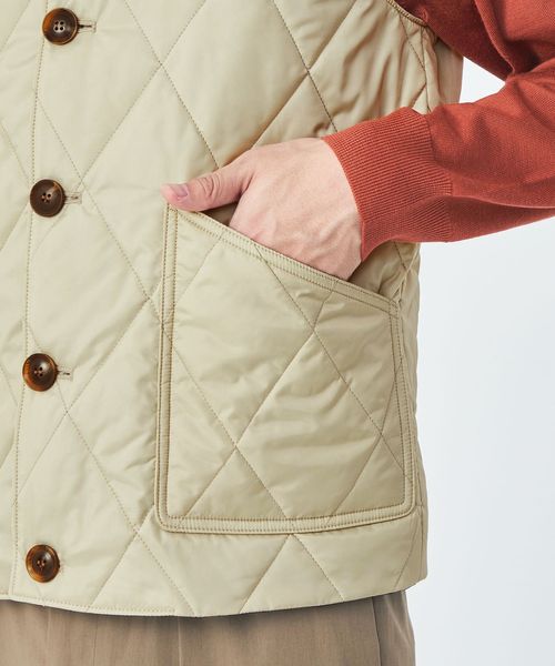 英国らしいダイヤキルトステッチが施された中綿入りのベスト。