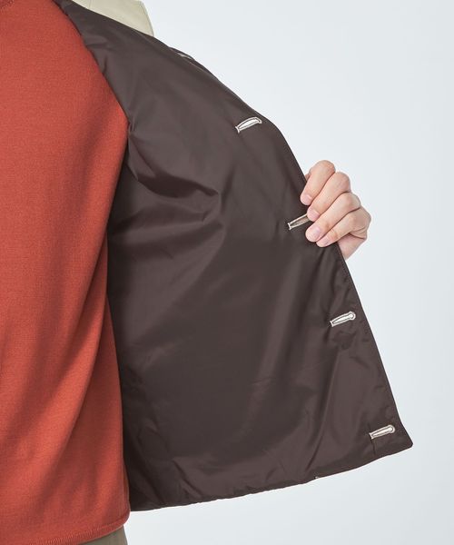 トップスの上から羽織った着こなしはもちろん、ジャケットやコートにインナーに取り入れたコーディネートもおすすめです。
