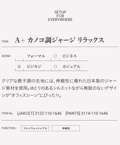・品番:31141101646 同素材セットアップパンツも展開ございます。