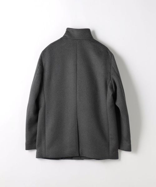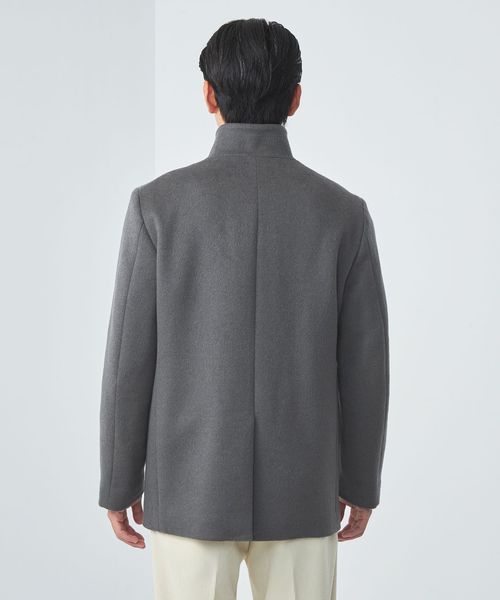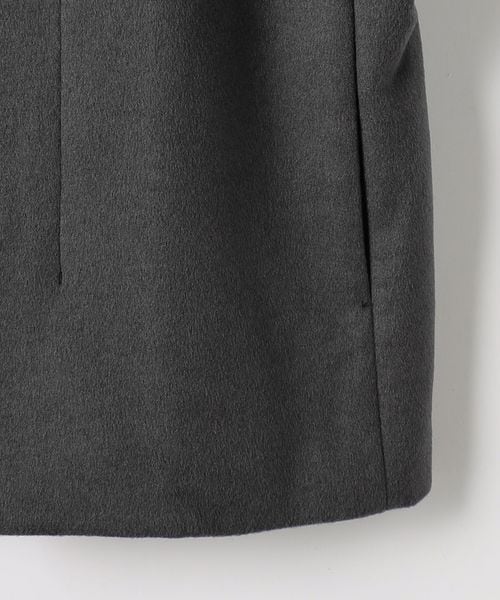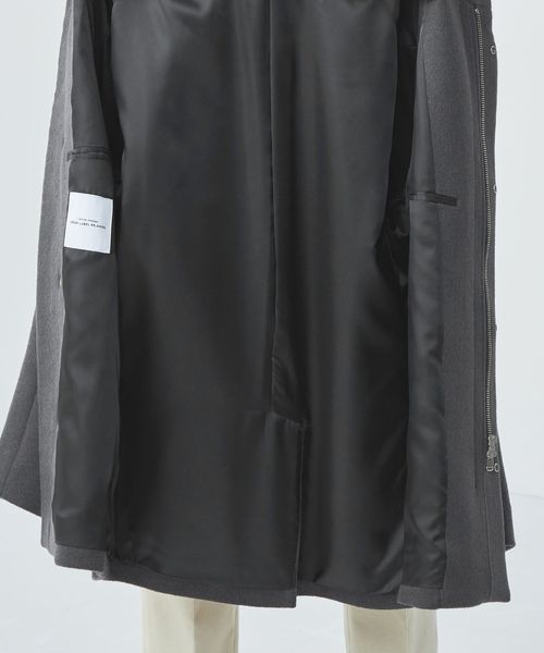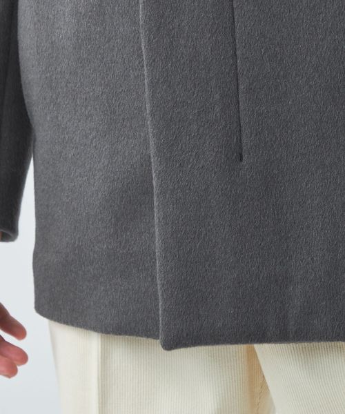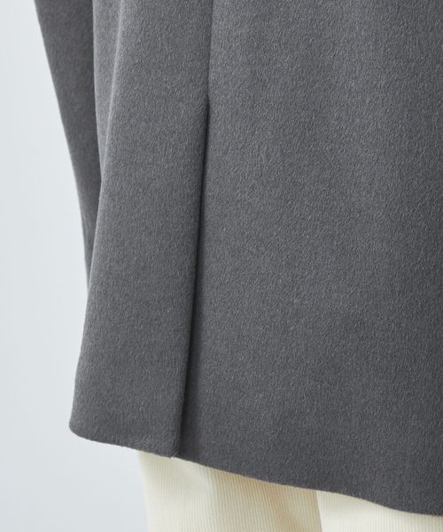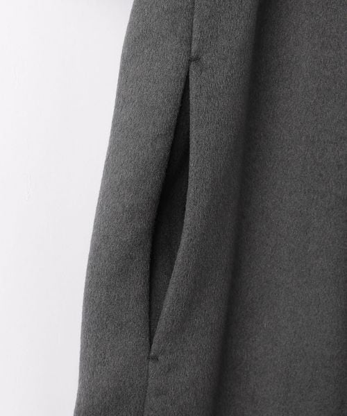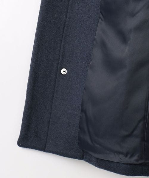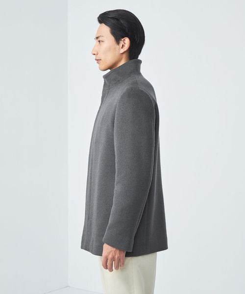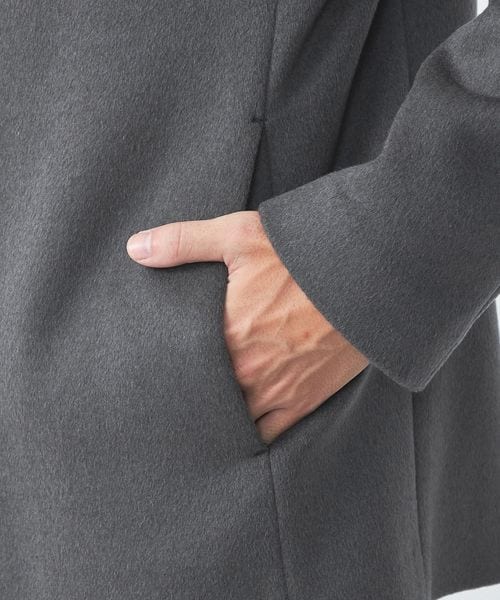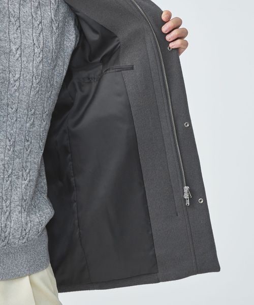 ジャケットの裾が隠れる着丈で、すっきりとした印象のミドル丈コートです。