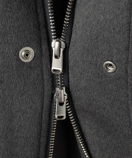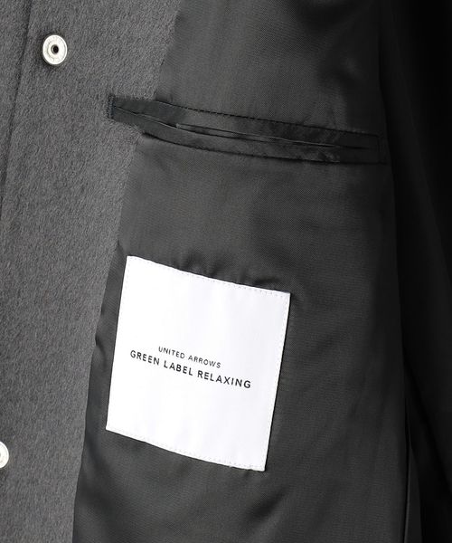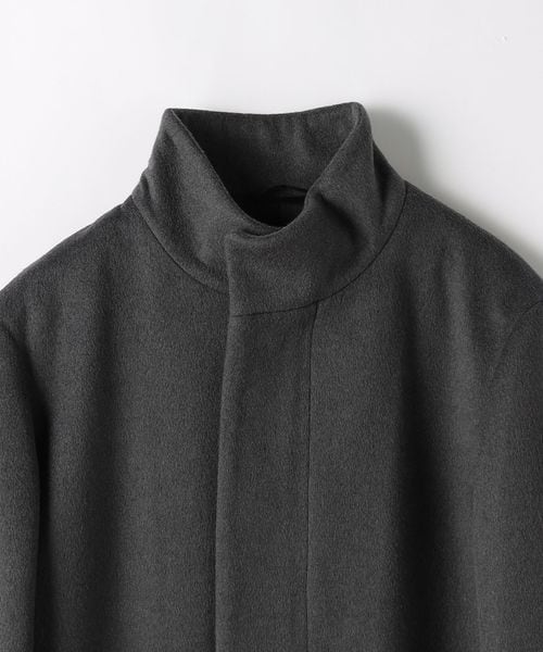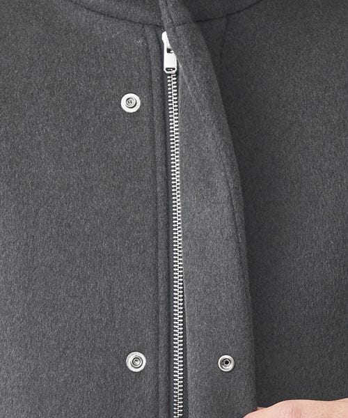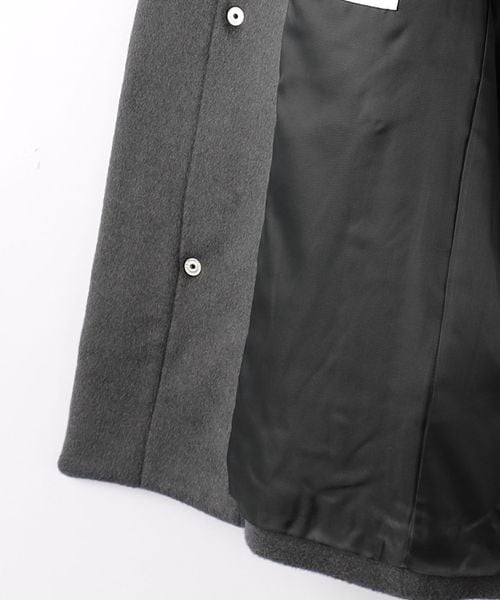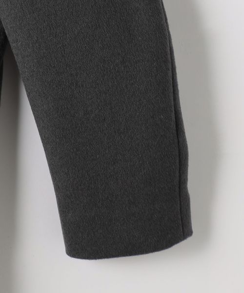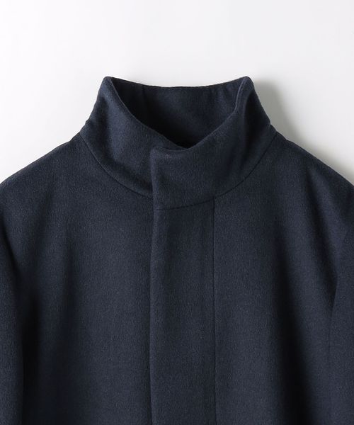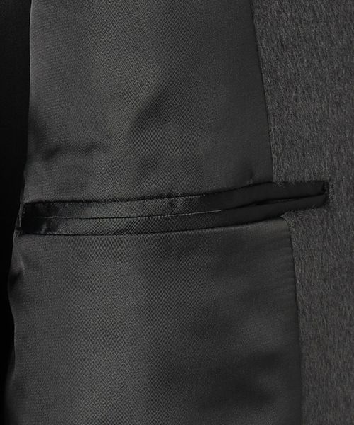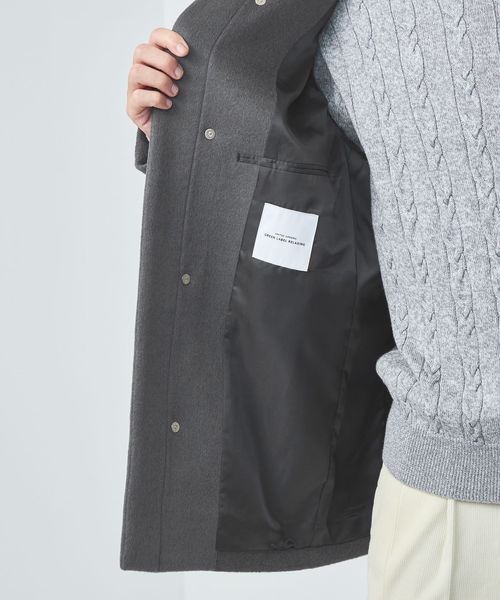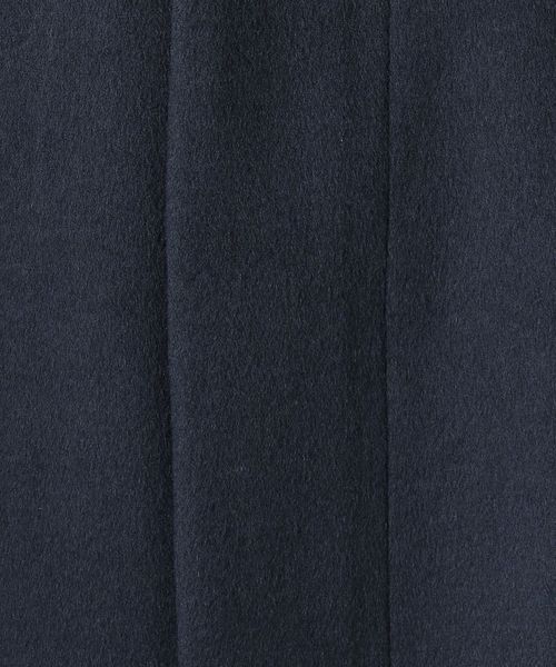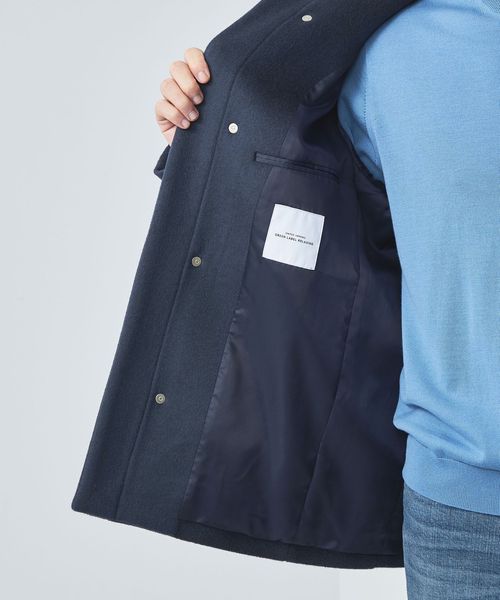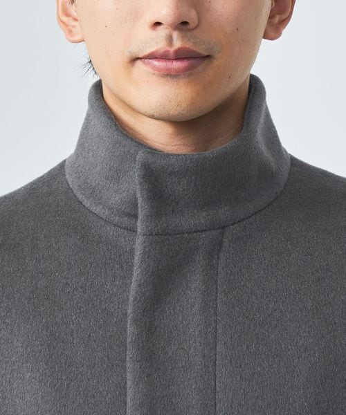 ジャケットの裾が隠れる着丈で、すっきりとした印象のミドル丈コートです。