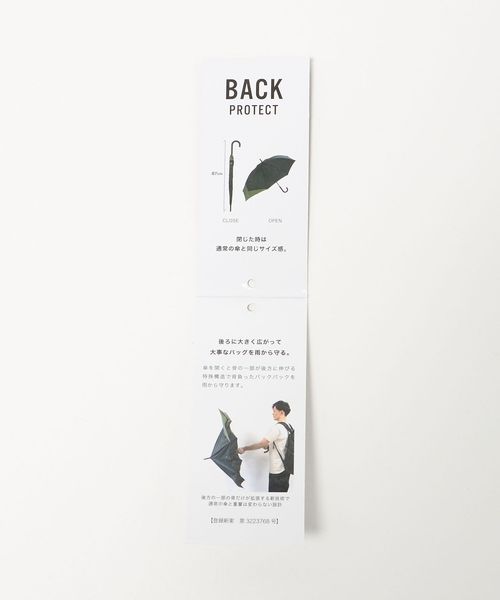 傘を開くと骨の一部がスライドして大きくなり、背負ったバックパックが濡れにくくなるバックプロテクト仕様が魅力。