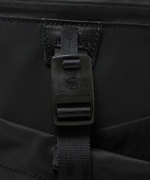 コードストッパーでサイズ調節が可能な大型ポケットには、マグネットによって簡単に脱着ができる<master-piece>オリジナルパーツを使用しています。