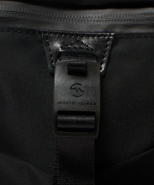 コードストッパーでサイズ調節が可能な大型ポケットには、マグネットによって簡単に脱着ができる<master-piece>オリジナルパーツを使用しています。