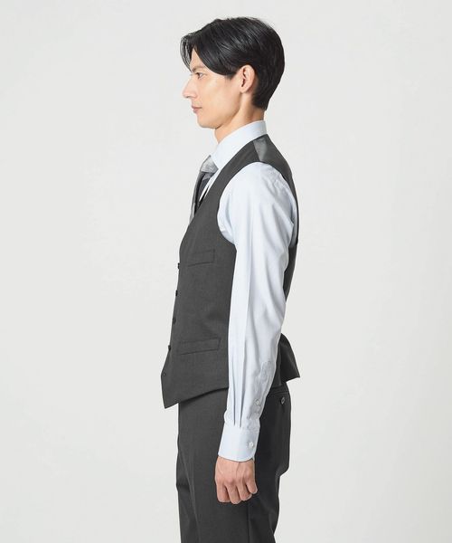 同素材セットアップと合わせたスリーピーススタイルがおすすめ。