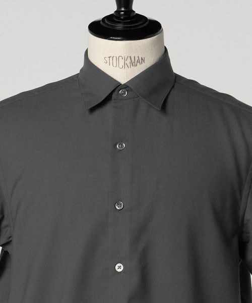 ・胸ポケットなし、レギュラーカラーでミニマルな雰囲気