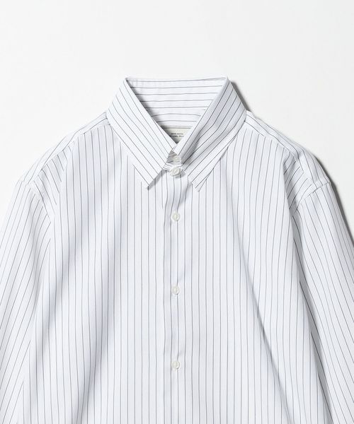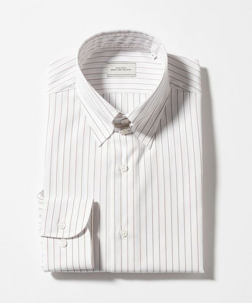 コットン ピンストライプ タブカラー ドレスシャツ ―イージーアイロン―