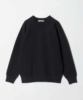 裏は適度な膨らみを持つポリエステルを用い、12ゲージ ダブルフェイス(二重編み)をフルファッション*で丁寧に編み立てたクルーネック。