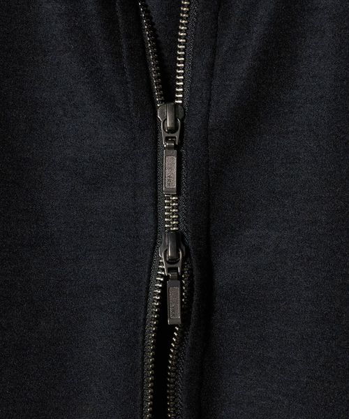 上品な光沢と程よいハリ感のウールスムースを用いた ZIPブルゾン。
