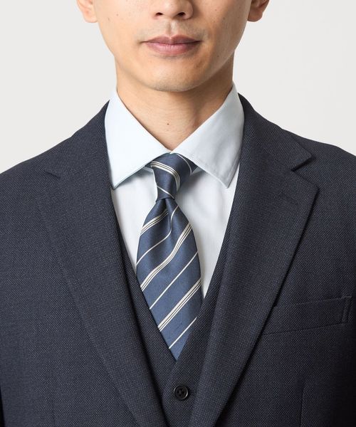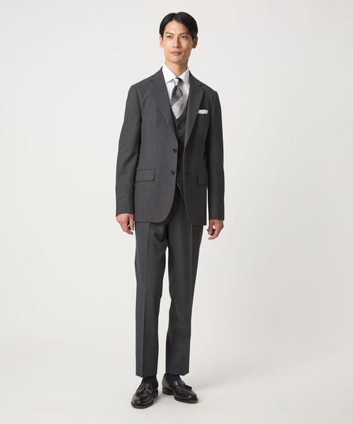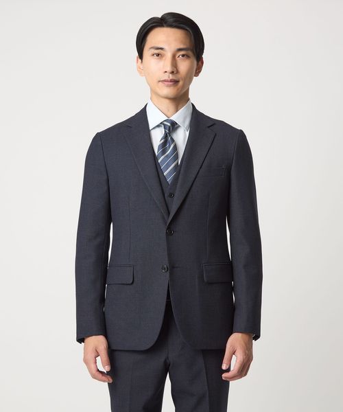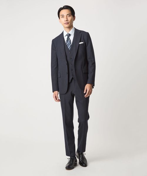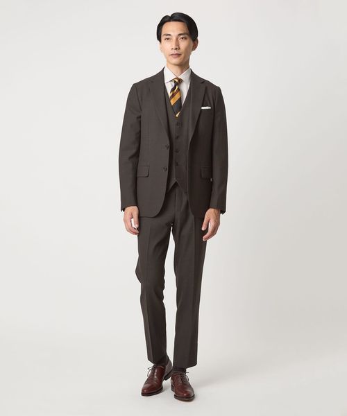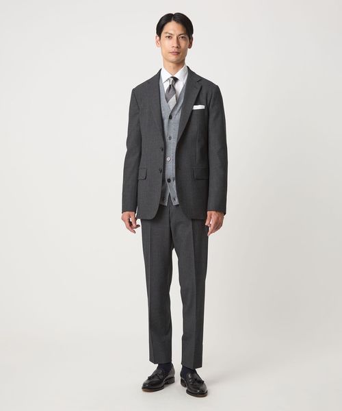 同素材ベストをプラスすれば、格上げ3ピーススーツスタイルも楽しめる1着です。