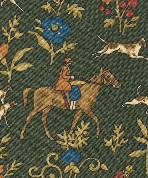 ・乗馬、犬、植物モチーフの柄が散りばめられたカントリー感のある雰囲気