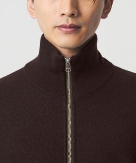ほのかなモード感もポイントの大人のジップアップカーディガン