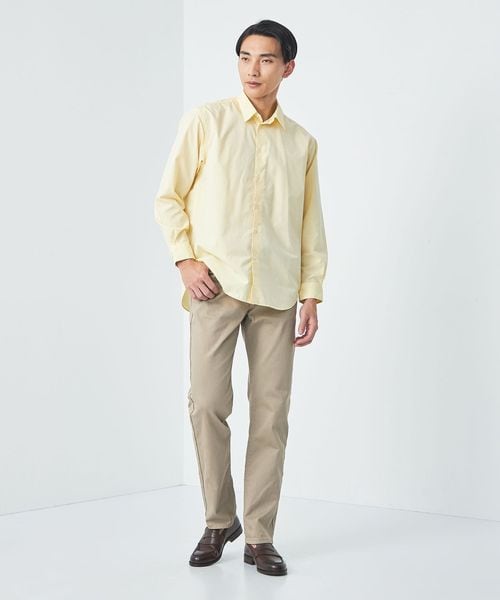 上品ながらリラックス感もある見た目と、肌離れが良くシャリっとしたはき心地は、いつものカラーパンツの一つ格上の雰囲気を演出してくれます。