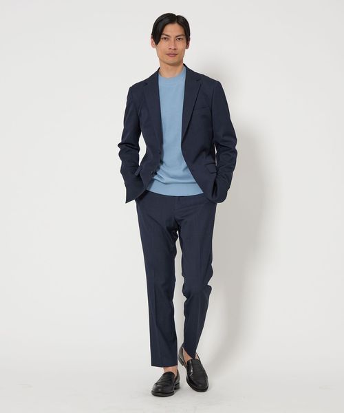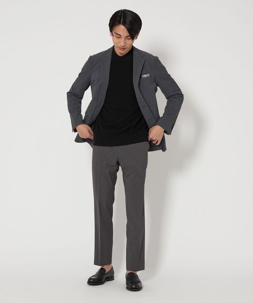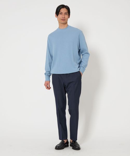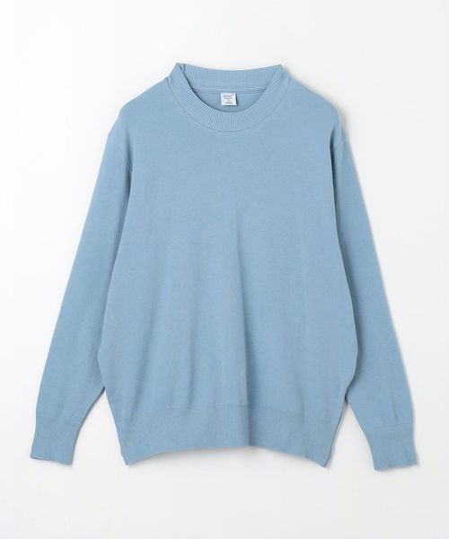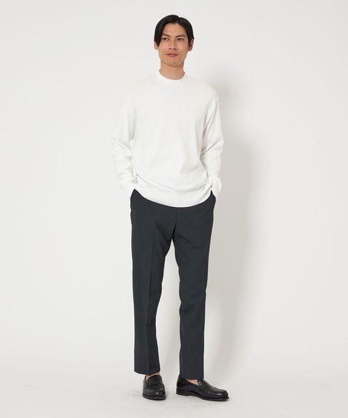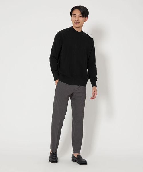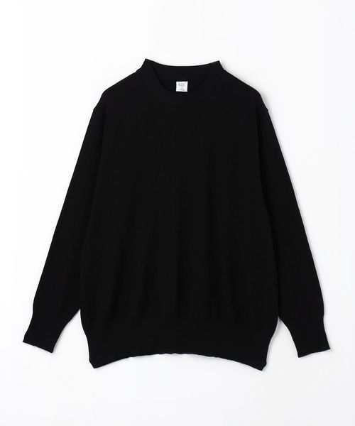 ネックや袖口、裾などのリブ編みと見頃生地のコントラストが上品見えするポイント。