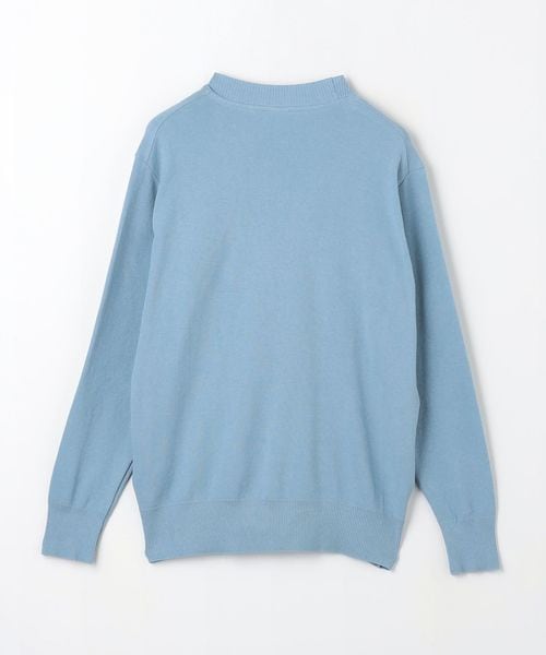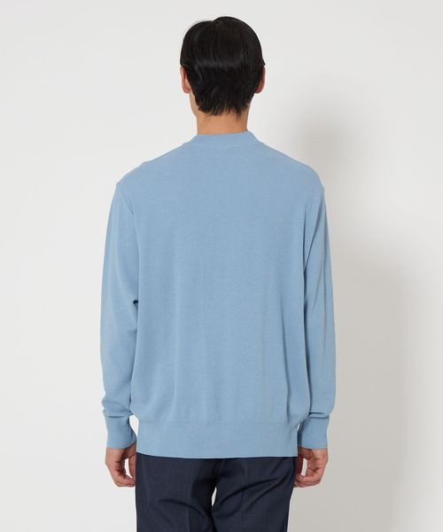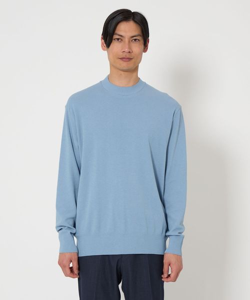 柔らかな蜂の巣鹿編みのモックネックロングスリーブニットソー。