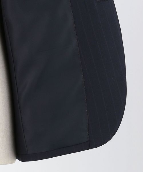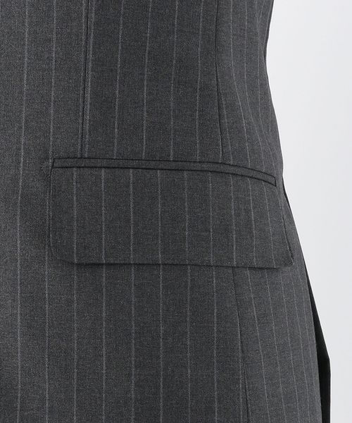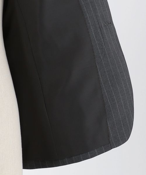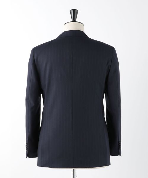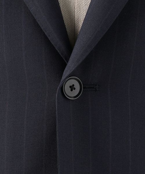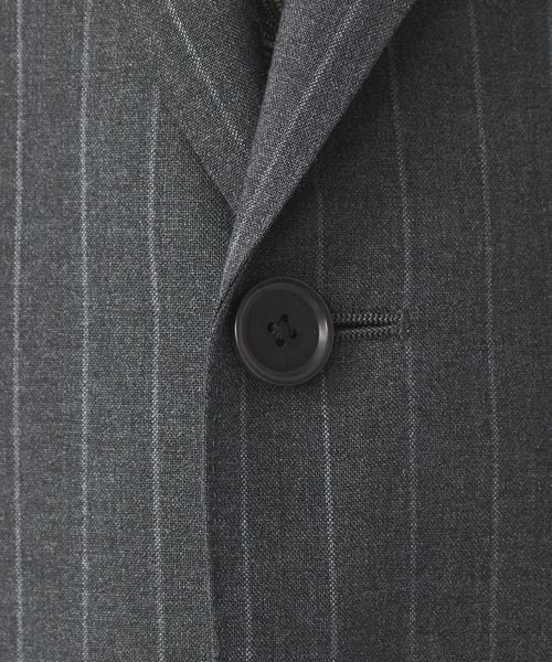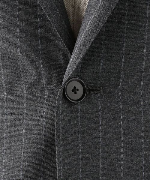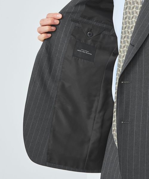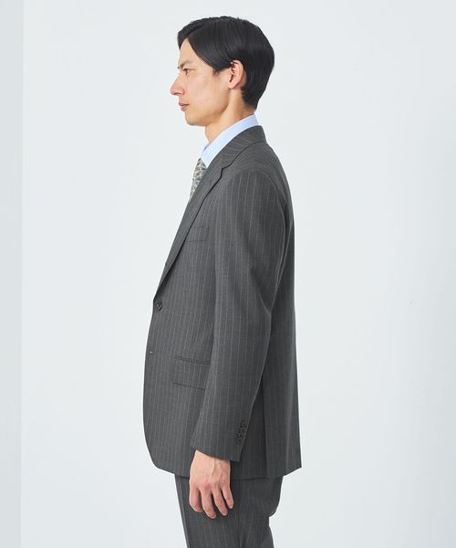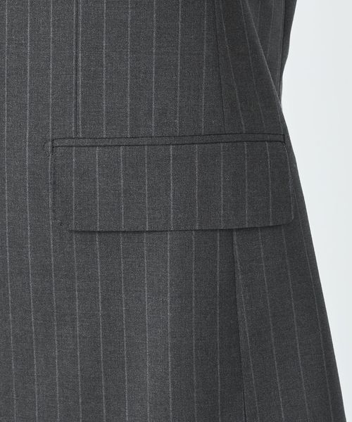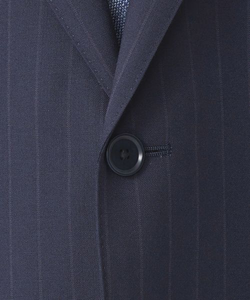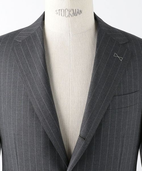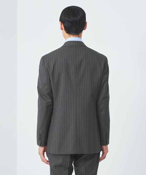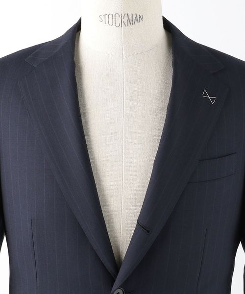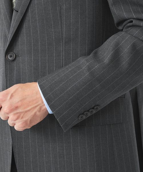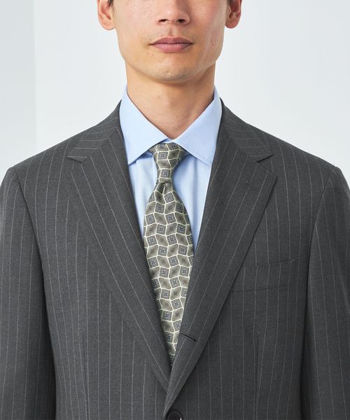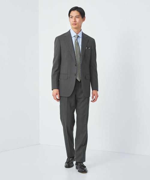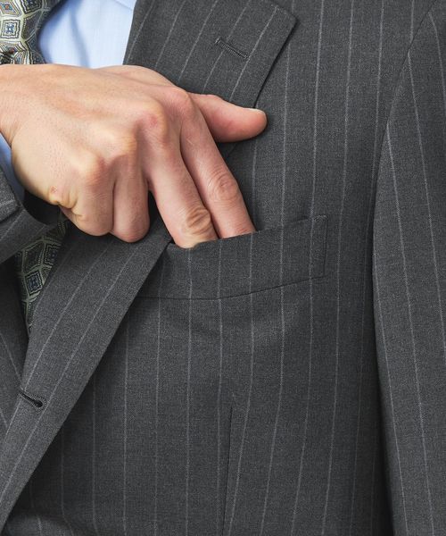 幅広のチョークストライプは、シャツやタイに柄を選んでも馴染みやすく◎。