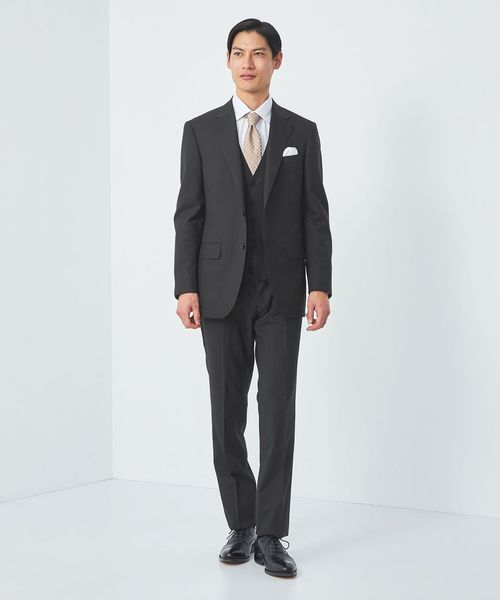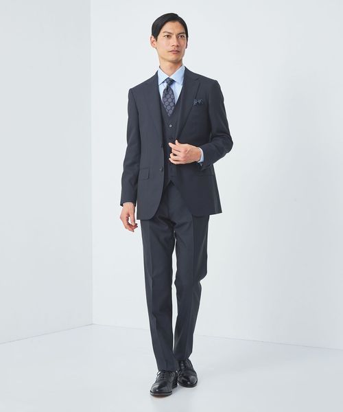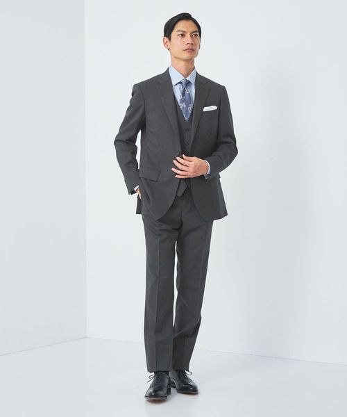 同素材ジャケットと合わせたスーツスタイルが、ビジネスシーンにおすすめ。