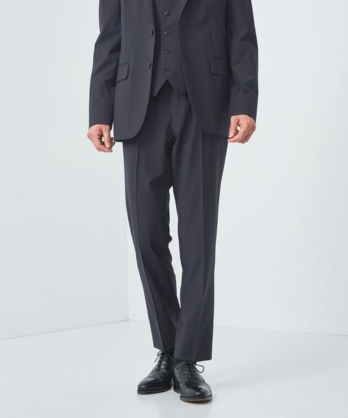 ビジネスシーンでは同素材ジャケットとのスーツスタイルがおすすめ。