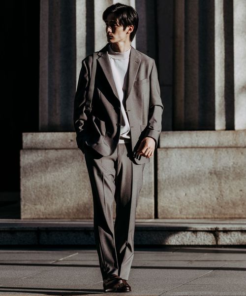 ニットやカットソーを合わせたコーディネートは、現代のビジネスシーンにもぴったり。