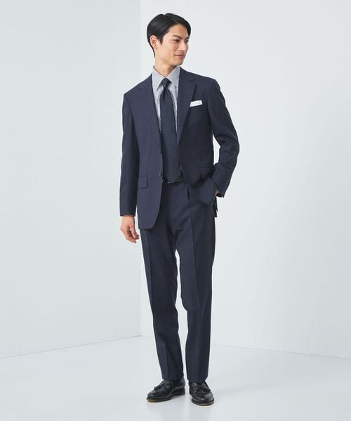 クラシックなデザインでグレンプレイド柄やチョークストライプ柄、3ピースといったスーツも好相性。