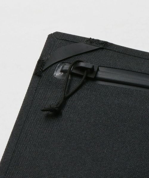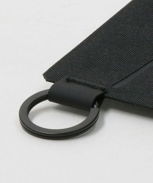 表側には、小物収納に便利なスリットポケット、ショルダー仕様も可能にするキーリングとループを装備しています。