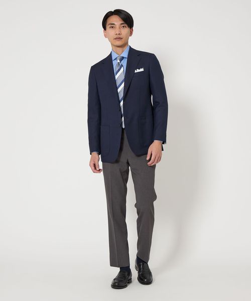 スラックスとのジャケパンスタイルがビジネスシーンにぴったりです。