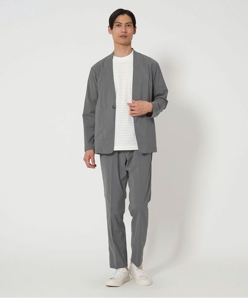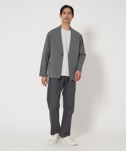 A+ ラッカンリネンライク 1B ノーカラー ジャケット ―ウォッシャブル・ストレッチ・吸水速乾―