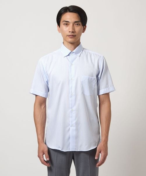 エブリット CC パナマ ストライプ スナップ ボタンダウン シャツ ―イージーアイロン・接触冷感―