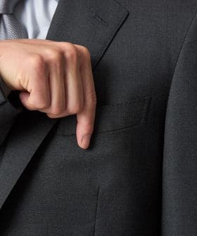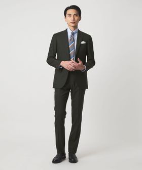 同素材パンツと合わせたスーツスタイルが、ビジネスシーンにおすすめ。