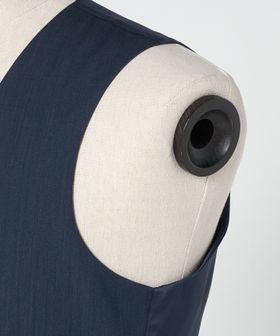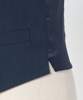 ・セットアップジャケットとレイヤードした際の見え方にこだわったVゾーンの深さと腰の2ポケットもポイント