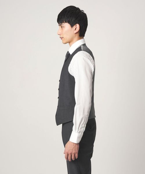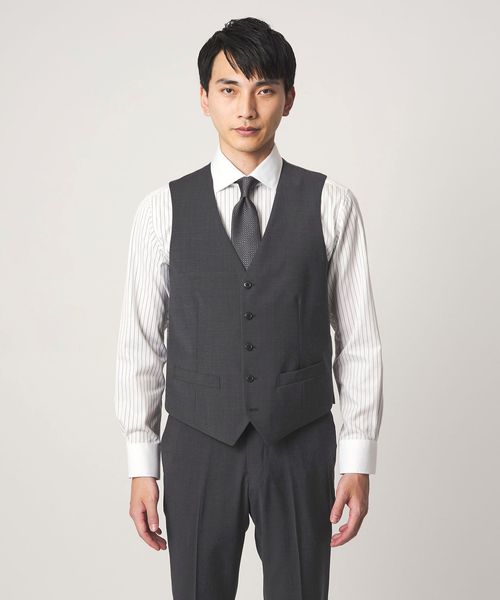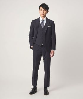 同素材ジャケット&パンツとの3ピーススーツスタイルがおすすめです。