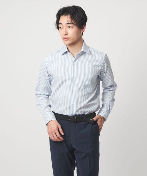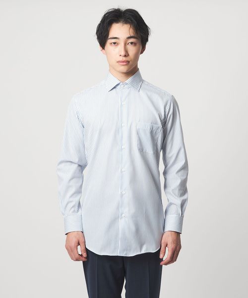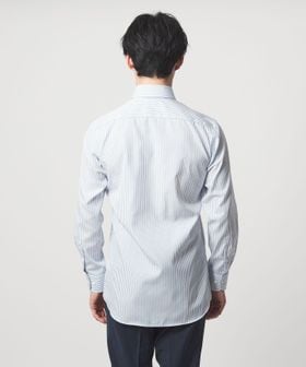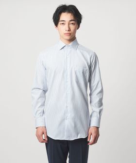 コットン ストライプ ワイドカラー ドレスシャツ ―イージーアイロン―