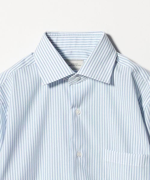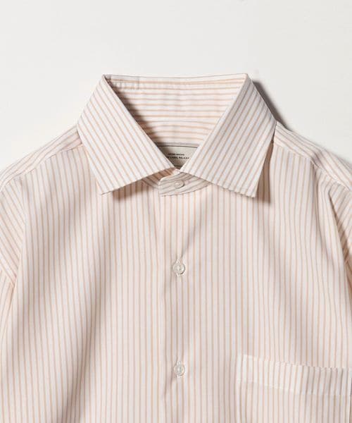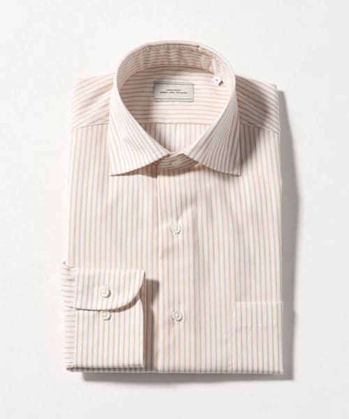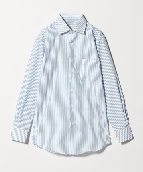 コットン ストライプ ワイドカラー ドレスシャツ ―イージーアイロン―
