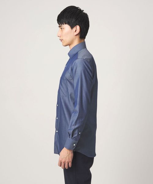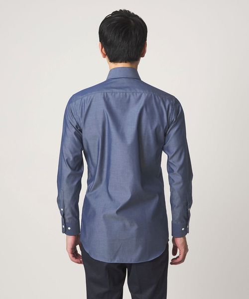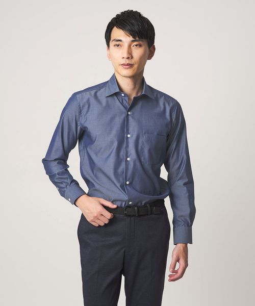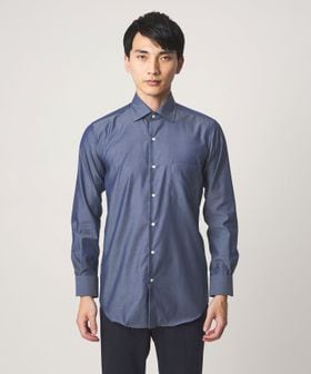 コットン シャンブレー ワイドカラー ドレスシャツ ―イージーアイロン―