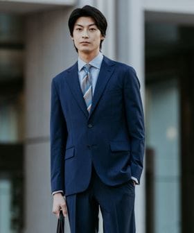 ビジネスシーンでは同素材パンツとのスーツスタイルがおすすめ。