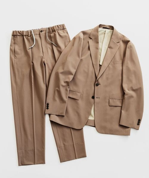 リラックスしたシルエットながら、上品なセットアップが完成します。