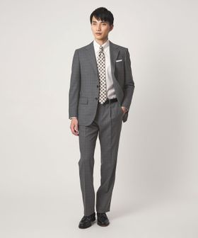 同素材ジャケットと合わせたスーツスタイルが、ビジネスシーンにおすすめ。